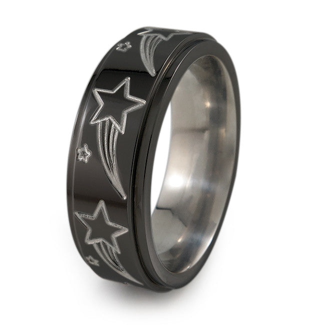 Shooting Stars Titanium Fidget Ring | All Black + Color